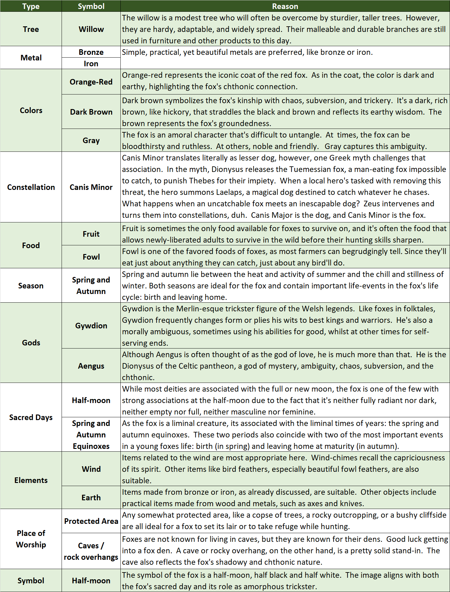 Below, I will describe the fox’s natural and mythical lore, outline his elemental associations with wind and earth, and explain his key symbols. This information will allow a Celtic pagan to readily tailor his practice for this trickster.