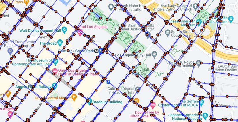 Taking these things for granted is easy, and boring old infrastructure maps correct that. The black line below is the vein that keeps life in Los Angeles pumping. Our cities, with their cell-like homes and filaments of electricity and water, mirror our own bodies. The visual is a reminder that this city, too, lives, that this city, too, is one with nature's weft.